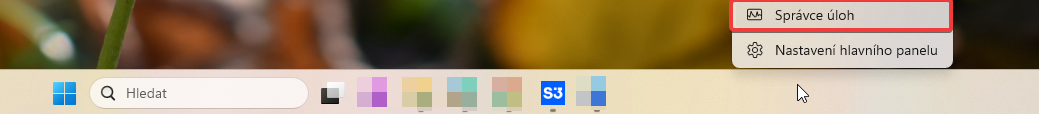 • Ve spodní liště Windows kliknete pravým tlačítkem myši a vyberete Správce úloh.