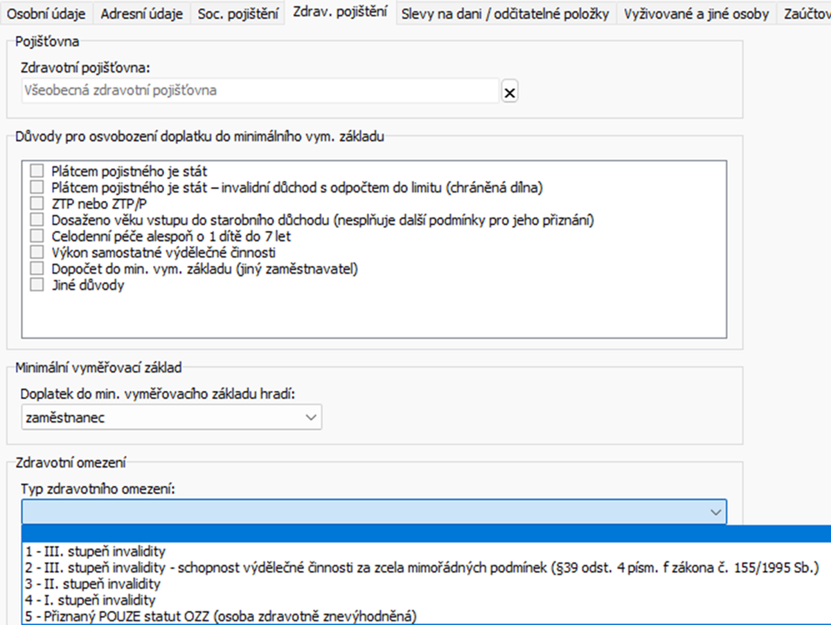 - Zdravotní pojištění – typ zdravotního omezení, změny v uplatnění slevy na invaliditu