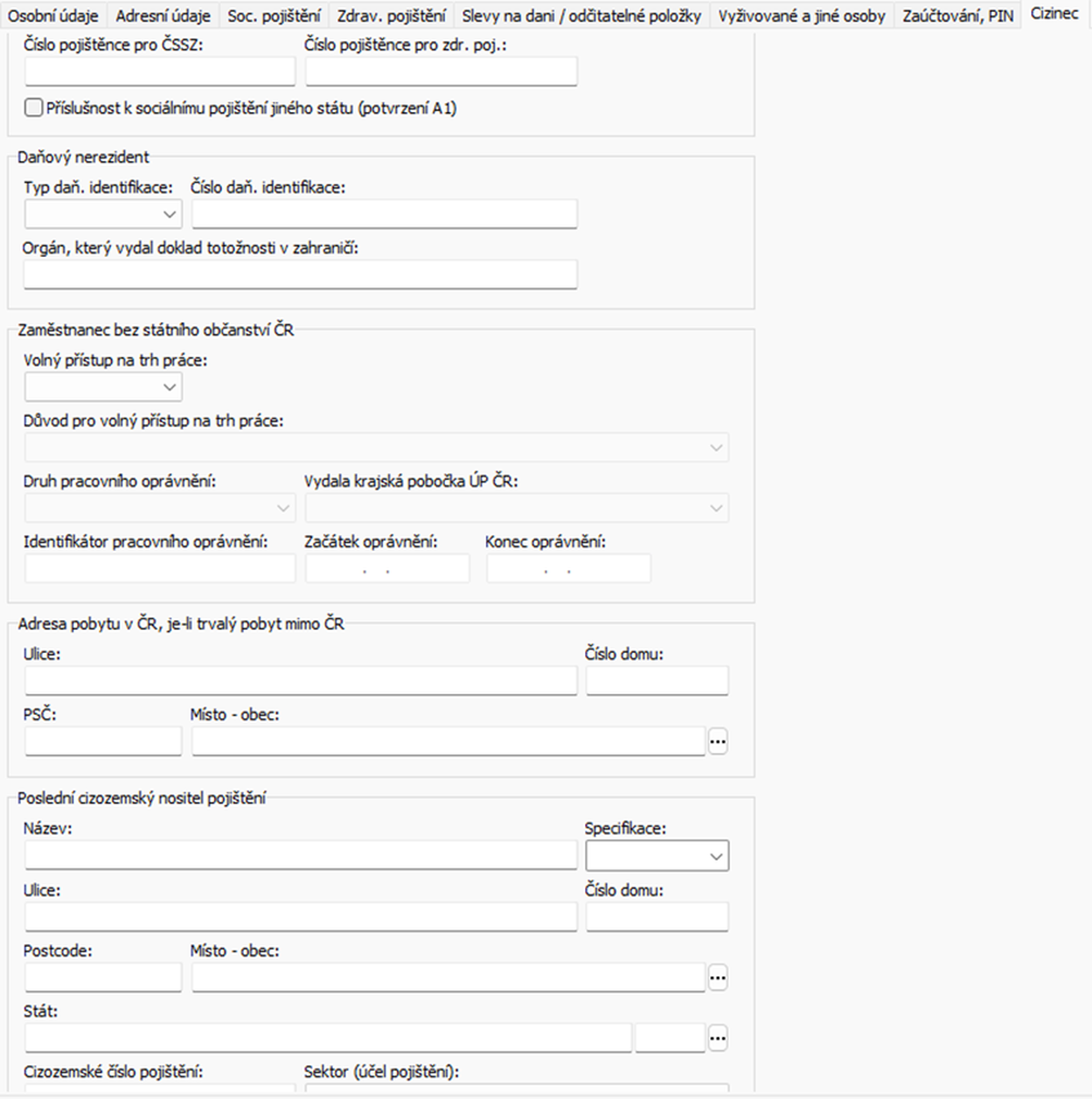 Karta Zaměstnance / Pracovní poměry / Ostatní