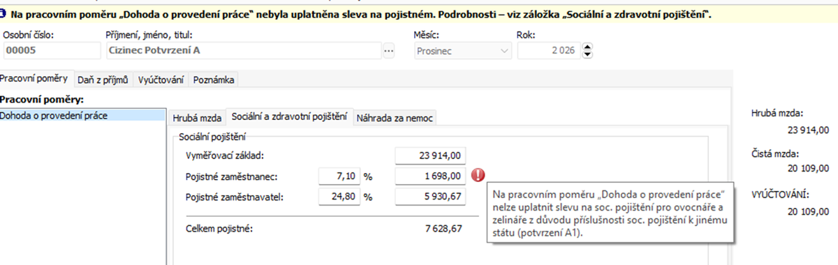 - Pokud se jedná o zaměstnance s příslušností soc. pojištění k jinému státu (potvrzení A1)