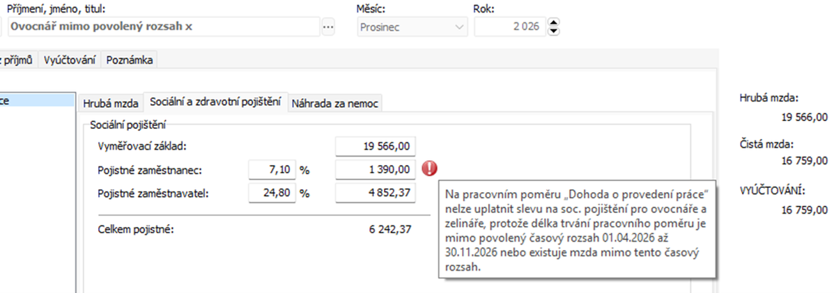 - Pokud se jedná o pracovní poměr zaměstnance, který je mimo rozsah duben-květen (příklad pracovní poměr je sjednán s platností od ledna do listopadu 2026). Podmínky pro poskytnuté slevy na pojistném musí být splněny po celou dobu, za kterou je sleva na pojistném uplatňována).