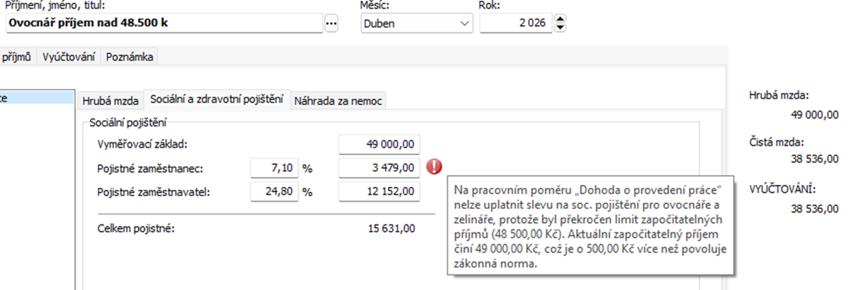 - Pokud je příjem zaměstnance větší než je průměrná mzda pro daný rok (průměrná mzda pro rok 2026 je 48.967 Kč – tato částka se zaokrouhluje na celé pětiset koruny dolů)