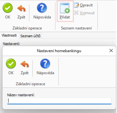 POZOR: v případě používání více účtů dané banky se stejnými přístupovými údaji je nutné přidat pro každý účet zvlášť nastavení Homebankingu (na kartě z předchozího obrázku tlačidlo Vlastnosti). Na základě tohoto nastavení se následně při použití S3 Automaticu pro každý účet zvlášť zapíše datum posledního stažení výpisu.
