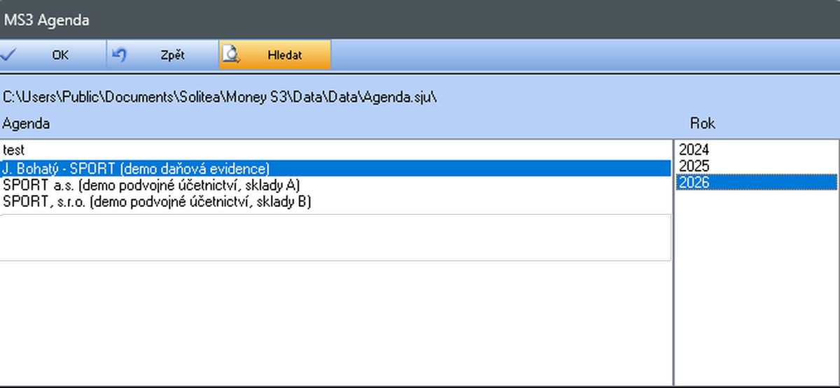 Založení roku 2026 v Money S3 Založení nového účetního roku