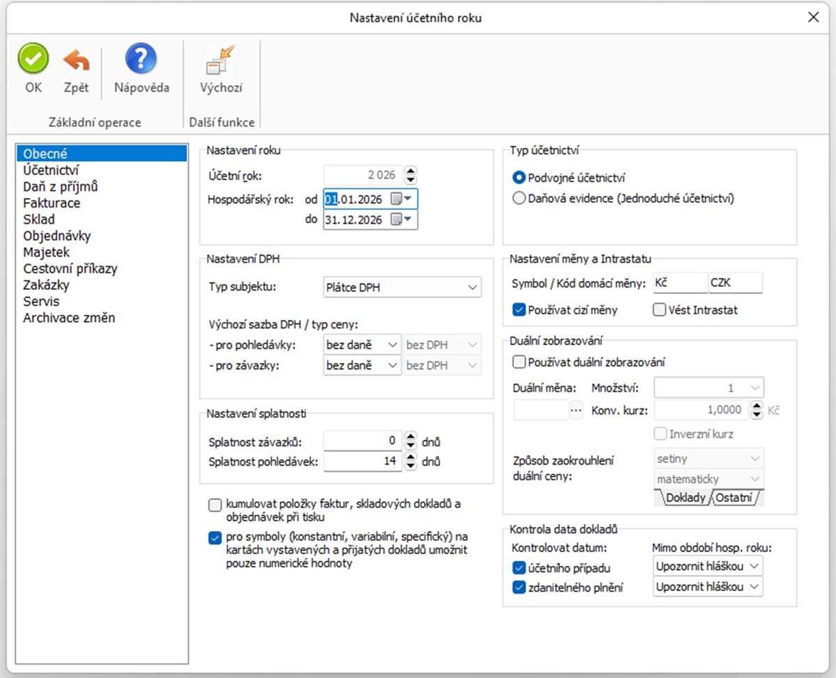 TIP: kromě nastavení konkrétního roku je možné nastavit také možnost "Dle systémového data". To zajistí automatickou změnu v budoucích letech.