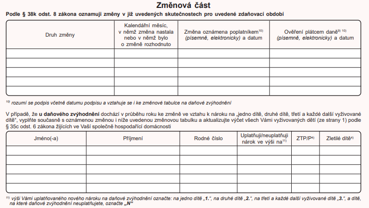 Nastanou-li v průběhu roku u zaměstnance změny, které mají vliv na daňové slevy, musí je doplnit do této části. Může jít například o: