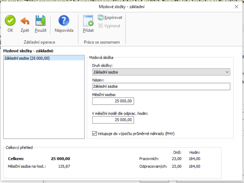 Na kartě Mzdy pak za každý měsíc doplníte: