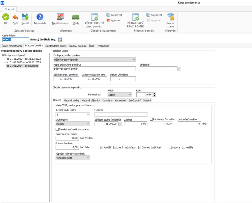 Přehledně evidujete pracovní poměry, složky mzdy, příplatky či srážky.