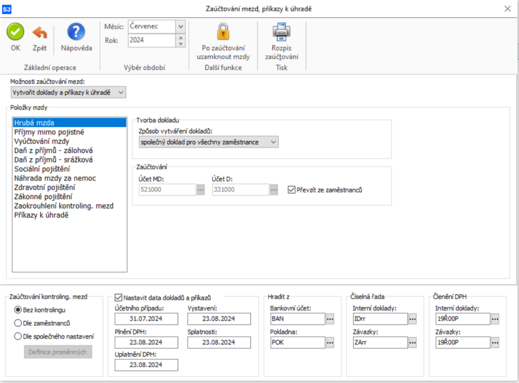 V posledním kroku vytvoříte interní doklady se zaúčtováním mezd a závazkové doklady pro příkaz k úhradě.