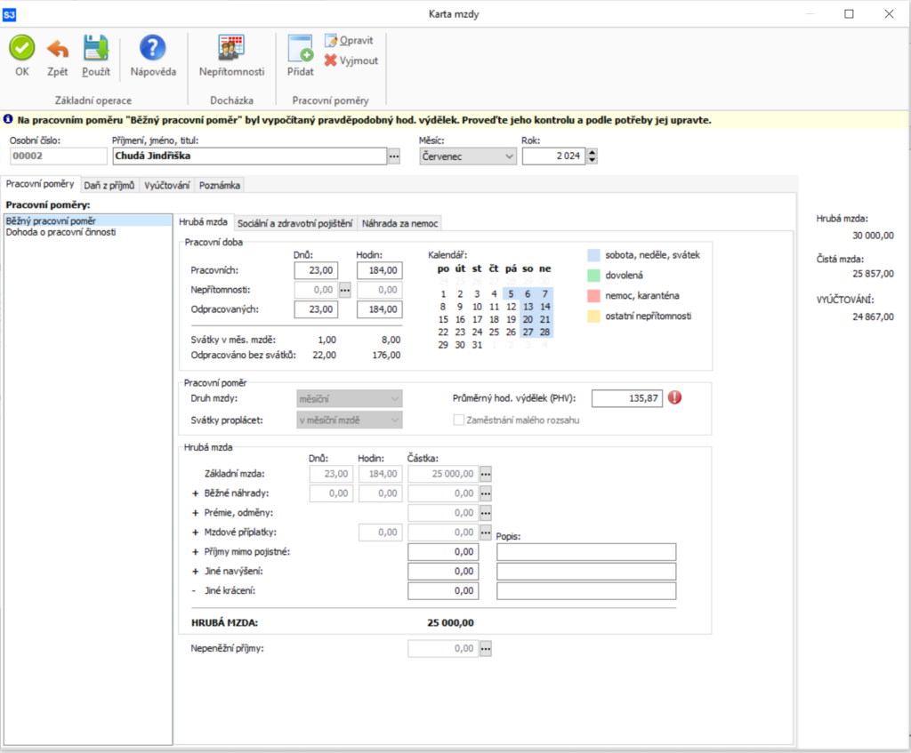 S Money S3 nepotřebujete kalkulačku. Program mzdy vypočítá automaticky na základě údajů, které u zaměstnanců evidujete.